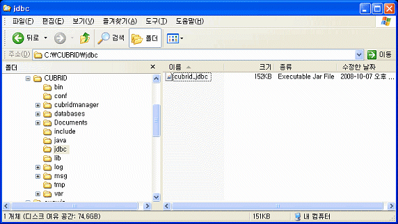 CUBRID JDBC 드라이버(cubrid_jdbc.jar)는 CUBRID 설치 디렉터리 아래의 jdbc 디렉터리에 위치한다.